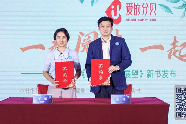 《健康产业新展望》作者王瑞,现为中国医药卫生文化协会健康产业投资分会会长,中国保险资产管理业协会股权投资计划及保险私募基金评估专家。在这次新书发布会上,与北京爱的分贝公益基金会理事长王娟签署公益协议,发起“一起阅读、一起公益”活动,明确本书作者所有稿费全部捐献爱的分贝公益基金会,支持听力障碍儿童救助项目。