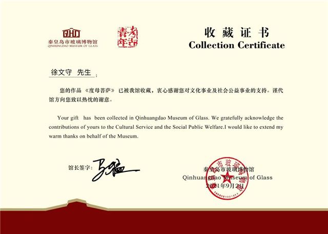 本篇作品《度母菩萨》已被秦皇岛市玻璃博物馆收藏!
