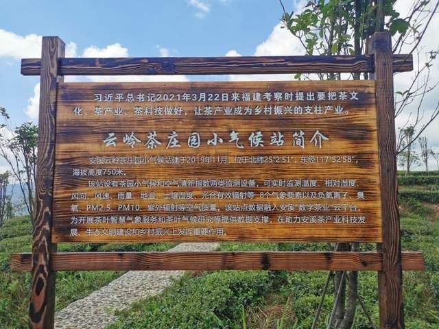 据了解,安溪气象局在全县建立了12套多梯度的茶园小气候站、2套负氧离子监测站,为茶叶气象服务提供数据支撑,现已完成云岭茶庄园乡村振兴气象服务示范点示范点的建设。另外,依托省气象局2021年乡村振兴气象服务示范点建设,还在云岭茶庄园建设二十四节气气候与茶叶生产建议智慧气象科普小道,助力乡村振兴发展。并制作VR展示乡村振兴气象服务示范点创建成果,结合线下实地和线上进行宣传展示。