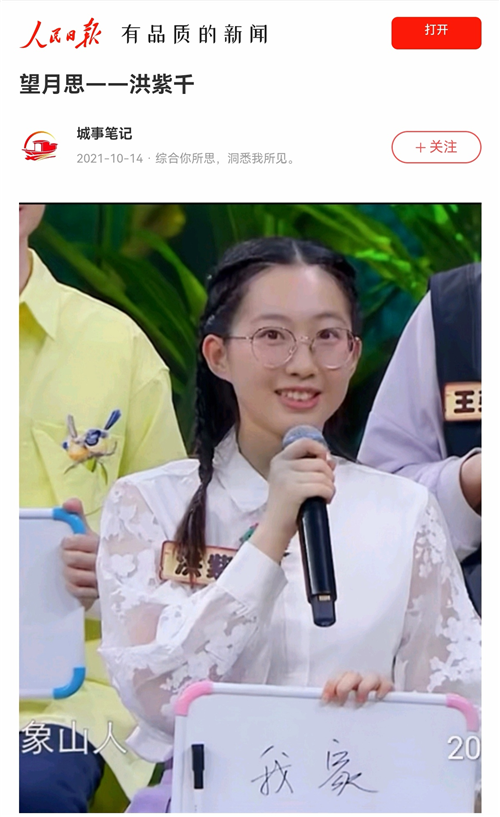 (洪紫千在央视CCTV1知识竞赛中2次夺冠)