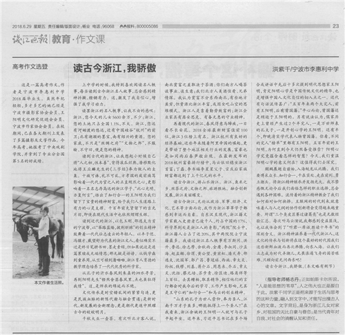(2018年,洪紫千高考作文刊登在发行量95万份的《钱江晚报》报上)