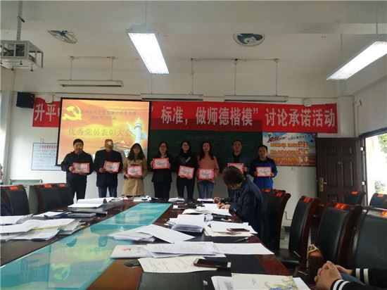 党员大会由支部委员邹丽同志主持。会上,支部委员张华富同志组织学习“两会精神”宣讲会、党小组长杨其同志组织学习《教育部提出8项要求》。然后邹丽同志组织全体党员应知应会测试,并表彰了2018年度优秀党员。