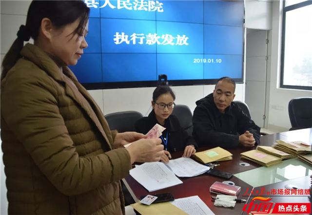 何东辉正在为群众发放执行款