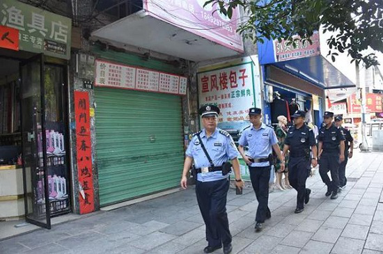 图为钟彪副市长对沿路的各金店进行安全检查。