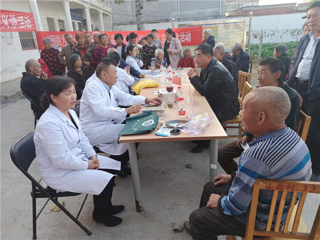 此次义诊活动,为山西村及附近群众免费提供测量血糖、血压和眼科、耳鼻喉科、内科、外科检查等服务,受益群众300余人次,发放各种健康宣传资料500余份。
