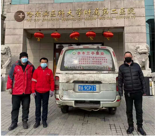 哈尔滨水木兰亭果业有限公司还向哈尔滨市传染病医院,黑龙江省传染病医院,哈医大二院,黑龙江省警备区和黑龙江省应对疫情防控指挥部等奋战在抗疫一线的单位和部门,捐赠1000箱新疆库尔勒特级香梨,用于抗疫一线人员的水果供应。同时,哈尔滨市水木兰亭果业有限公司向黑龙江省军区捐赠250个护目镜,供抗击疫情一线人员使用。