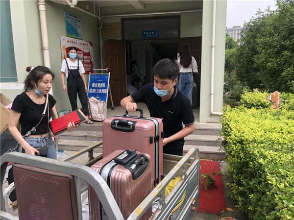 学生处下沉工作人员到学生公寓帮助毕业生搬运行李