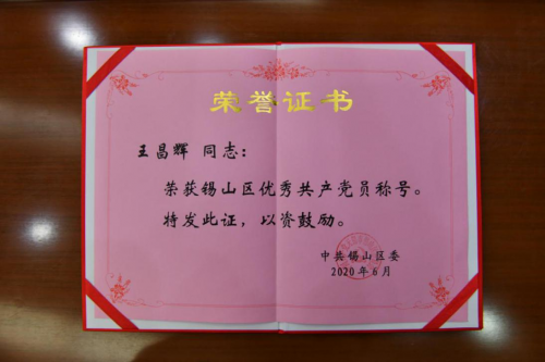 6月28日下午,在庆祝中国共产党成立99周年之际,为激励先进、树立典型,经推荐评选,无锡市锡山区委决定授予王强等50名同志“锡山区优秀共产党员”称号。其中,红豆集团有三人光荣入选,红豆股份董事王昌辉荣获“优秀共产党员”称号。