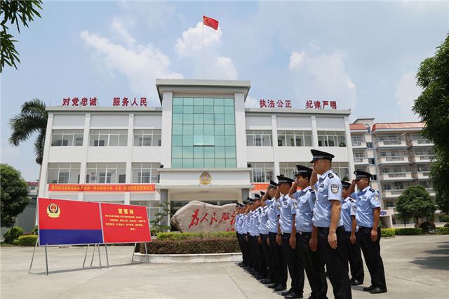 为进一步铸牢忠诚警魂,推动“坚持政治建警全面从严治警”教育整顿工作深入开展,近日,广西大新边境管理大队组织开展向中国人民警察警旗宣誓活动。