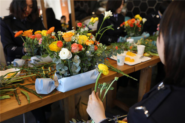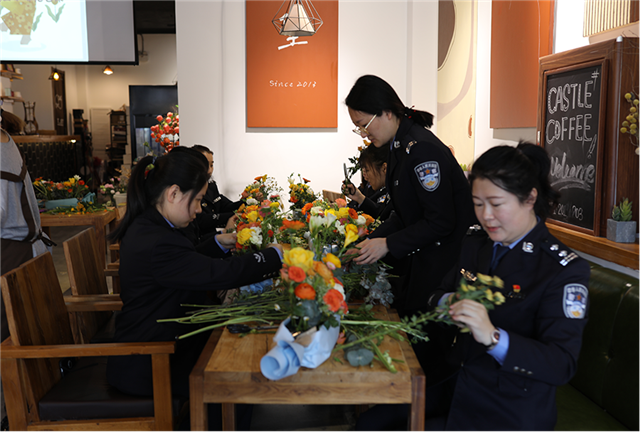 DIY丰富精神生活。为了丰富单位女警的精神文化生活,提高生活质量,我站开展DIY花艺活动,由花艺师现场讲授教学,将日常花艺搭配技巧和经典礼盒搭配详细讲述,女民警们在花艺师的指导下独自完成插花作品。此项活动,大家参与度非常高,真正做到了提高单位女民警的获得感,归属感,幸福感。