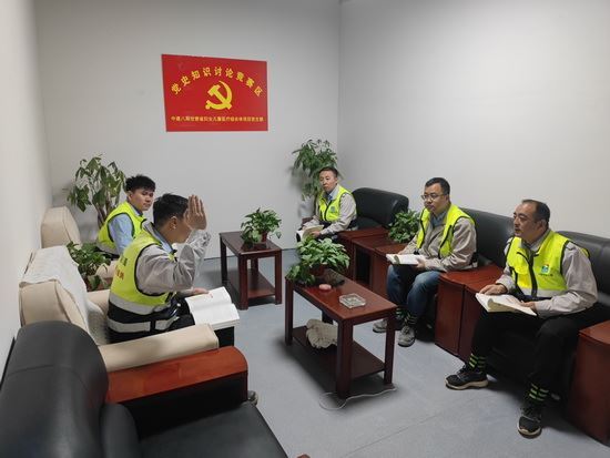抓好学习动员学有所思。搞好党史学习教育,起点在学。项目党支部及时召开党史学习教育动员大会,提出党史学习教育的目标任务和具体措施,动员全体党员把党史学习教育与贯彻落实党中央重大决策部署、推动企业高质量发展与项目高效建造相结合,有力推动学习教育起步扬势、落地踩实。