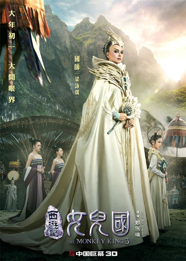 与师徒四人不同,作为女儿国国师,梁咏琪则是全场最高冷的一位,霸气的眼神上演王之蔑视,一副誓死守卫女儿国国土、坚决捍卫男人不得入内宗旨的样子,似乎要与师徒四人展开一场终极较量。
