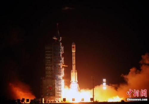 资料图:2011年9月29日晚21时16分,中国全新研制的首个目标飞行器“天宫一号”发射升空。中新社记者 孙自法 摄