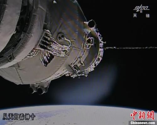 资料图:从天宫一号看与神舟十号交会对接全过程实时画面。中新社发 秦宪安 摄