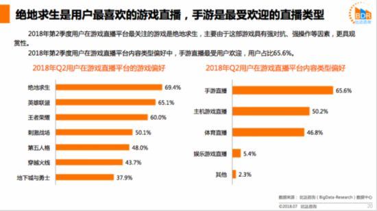 而在2018年第2季度用户在游戏直播平台内容类型偏好中,手游直播最受用户欢迎,用户占比65.6%。通过这一系列数据可以显示,目前国内的游戏直播市场,手游直播的比重正在大幅上升,内容占比已渐渐超过了端游直播。