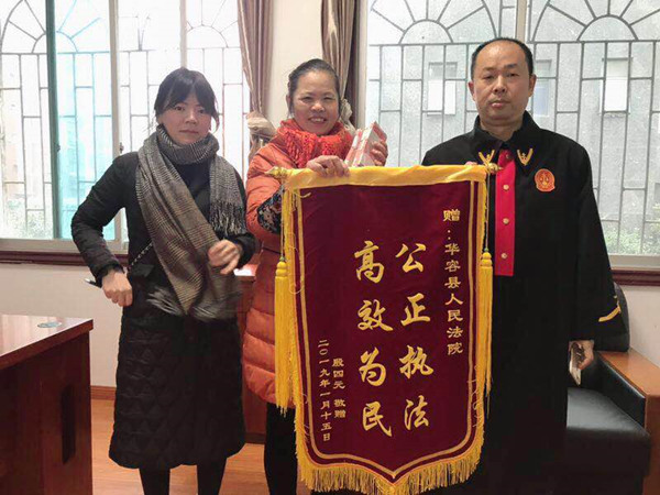 近日,一起离婚纠纷执行案件的申请执行人殷某在领取到执行款之后,给湖南省华容县人民法院注滋口法庭法官送上锦旗。