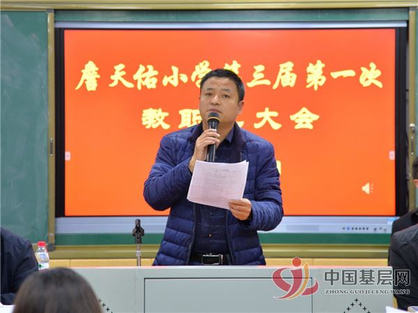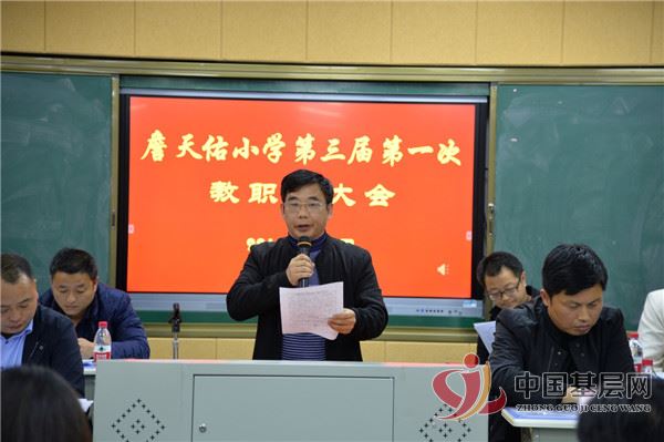 中国基层网婺源4月5日消息(通讯员 罗国伟 张亮生)4月4日下午,詹天佑小学召开第三届第一次教职工大会。下午1时整,该校录播教室内一百三十多位教职工济济一堂,参与学校民主管理,共谋学校发展大计。主席台前就坐的有党支部书记、校长金春来,党支部副书记胡道德,副校长程海毅、詹文尚、何桂光,工会副主席汪德生,报账员程文生,职称负责人张亮生。县教育督导室副主任江雪林,县教育工会副主席、局机关工会主席黄文生受邀出席。