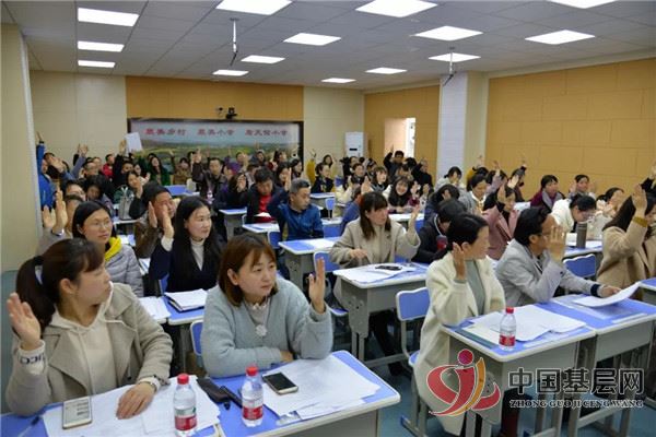在嘹亮的国际歌中,詹天佑小学第三届第一次教职工大会胜利闭幕。