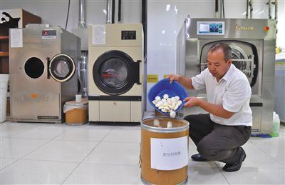 北京人卫酒店洗衣房,工作人员将没用完的一次性香皂收集再利用。