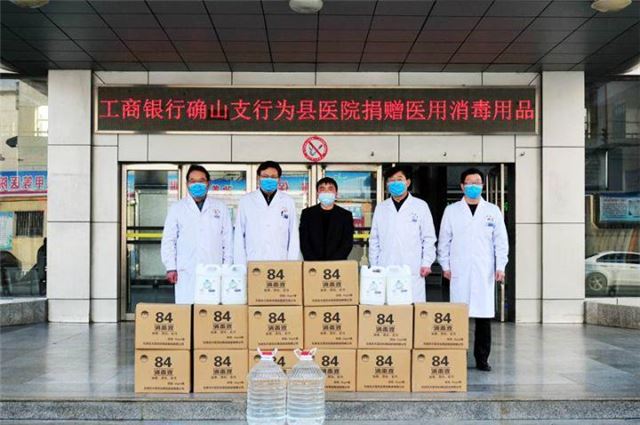 与此同时,该行在防疫物资紧缺的情况下,多渠道协调采购,为医院、疫情防控卡点捐赠口罩、消毒液、方便面、火腿肠、牛奶等防护及生活物资,慰问战斗在防疫第一线的医护人员和防控卡点职守人员,助力打赢疫情防控阻击战。