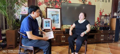 图为:革命烈士陈平山的孙女陈卢瑞珠在接受媒体采访
