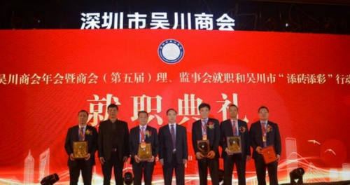 日前,深圳京基100大厦五楼宴会厅欢声笑语、客朋满座,来自深圳吴川商会在深圳创业的精英们欢聚一堂,共同庆祝深圳吴川商会年会(第五届)理、监事会就职暨吴川市“添砖添彩”行动推进会在这里召开。市人大常委会主任骆济强,市委常委、宣传部长叶焕泉,市政协副主席王永强,市工商联主席、总商会会长庞建文,深圳吴川商会会长陈阳华,深圳三七二一设计有限公司创始人陈冷,以及来自各界名知人士、企业家、会员欢聚一堂,共话创业取得的丰硕成果,话乡情、友情、亲情。