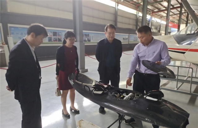 在湖南翔龙飞机有限公司,调研组听取了企业的发展历程。湖南翔龙飞机有限公司成立于2017年3月,公司以通用飞机、大型工业无人机的研发、制造为主业,依托全球化供应链体系,协同产业链上下游伙伴,实现军民融合两翼齐飞。目前,桂阳基地生产线已经达到稳定生产状态,具备年产量100架的生产能力。湖南湘晨通航有限公司表示,在立足通航产业这一主业的同时,开始布局恒温无限游泳机、共享浴室等产业,力求实现高质量发展。