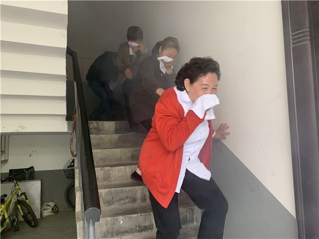 培训中,青神县消防救援大队教官通过大量的火灾现场图片、视频,以及现实生活中的真实案例,生动讲解了日常消防管理、火灾预防、火灾应对、自救互救以及疏散逃生等安全防灭火知识。为了提升应急避险逃生能力,还组织大家进入小区进行灭火器灭火演练和楼道疏散逃生演练。