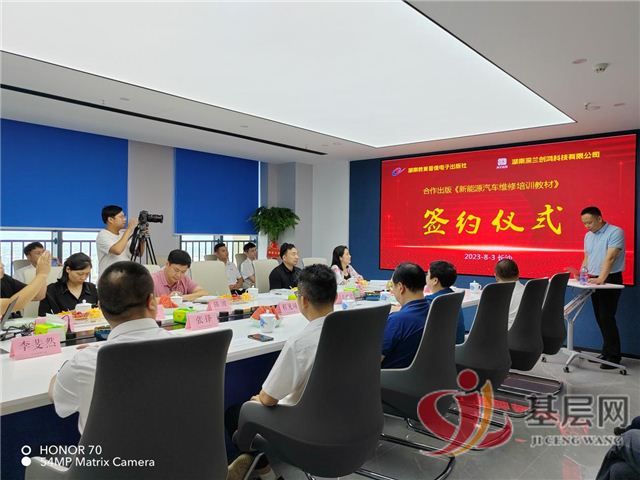 新能源汽车销售如火如荼,其制造技术不断更新,但售后服务却严重脱节的背景下,8月3日,湖南深兰创鸿科技有限公司联袂湖南教育音像电子出版社,在长沙举行《新能源汽车维修培训教材》签约发布会,中英双语面向全球同步发行。